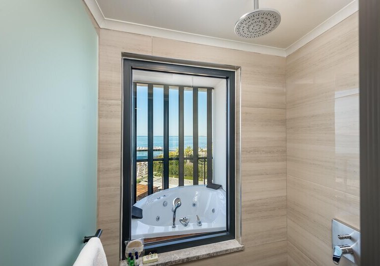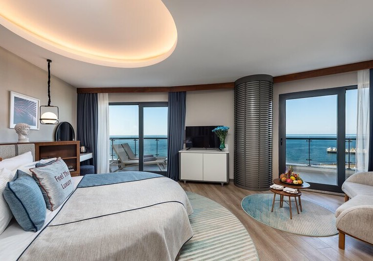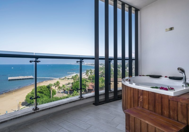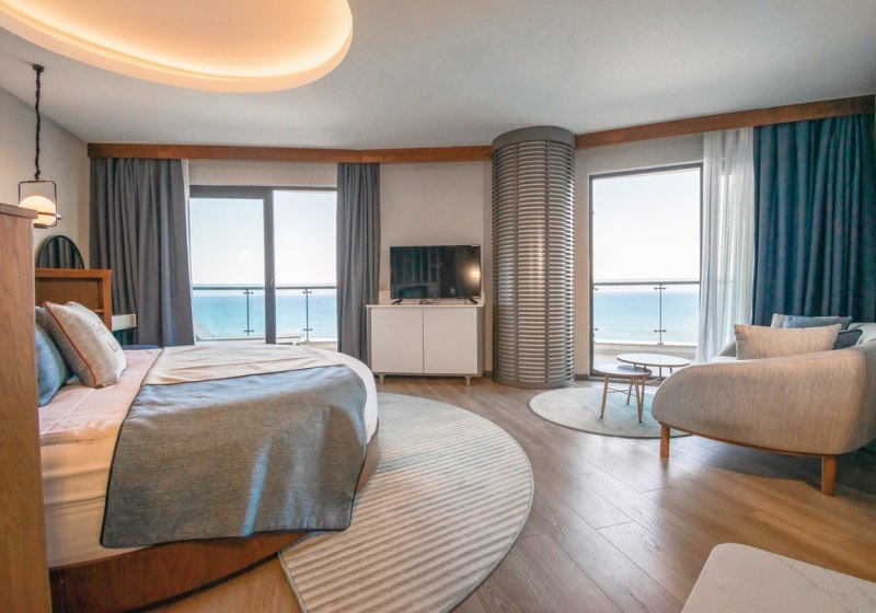- Meerblick: Zimmer wahlweise mit vollem oder seitlichem Blick auf das Meer.