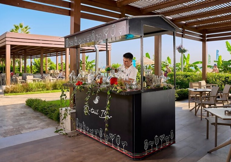 Im QAPARI Hauptrestaurant speist Ihr mit Terrasse, dazu stehen À-la-carte-Optionen bereit. Mehrere Bars – darunter Lobbybar, Swim-up-Poolbar und Beachbar (10:00–24:00) – verteilen sich sinnvoll über die Anlage. Das 24-Stunden-Bistro hält Snacks jederzeit bereit.