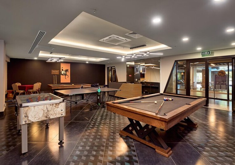 Praktische Services unterstreichen den Komfort: Concierge, Mietwagen, Transferservice, Shops, Friseur, Wäscherei, medizinische Betreuung sowie E-Ladestationen. Für Meetings stehen zwei Konferenzräume mit Technik bereit, abends locken Theatersaal und Arcade-Gaming-Raum.