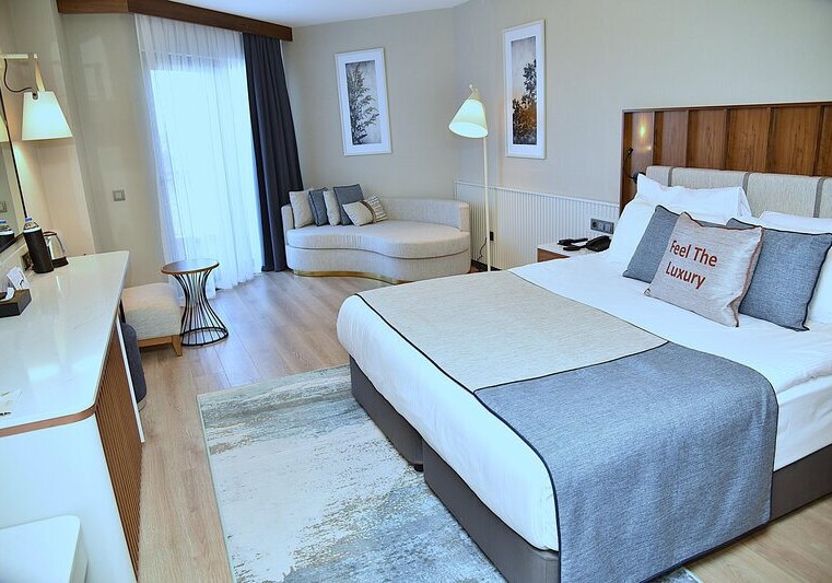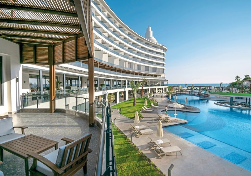 Im Seaden Quality Resort & SPA wohnt Ihr direkt am Sand-Kiesstrand von Side, in einem Resort mit 356 Zimmern und neun Etagen. Die großzügige Gartenanlage mit Süßwasserpool, Hallenbad und sonnigen Ruheflächen wirkt klar strukturiert und modern. Familien und Strandliebhaber finden hier ein unkompliziertes, gut organisiertes Umfeld mit vielen Rückzugs- und Aktivzonen.