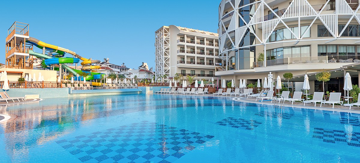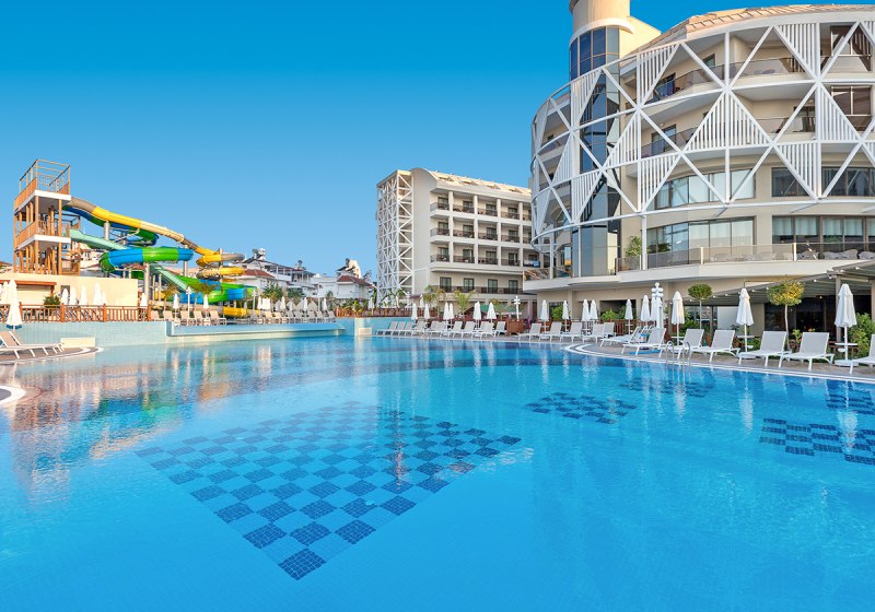 Seashell Vega in Gündogdu verbindet lebhafte Urlaubsfreude mit klarer Struktur. Ihr wohnt in drei fünfgeschossigen Gebäuden mit 279 Zimmern, bewegt Euch zwischen Sonnenterrassen, Relaxpool und dem Pool mit drei Rutschen, während WLAN in Anlage und Zimmern zuverlässig begleitet. Strandtage liegen greifbar nah: Ein Shuttle bringt Euch die ca. 500 Meter zum Sandstrand, wo Liegen, Schirme und Badetücher bereitstehen. Highlight: Shuttle zum Sandstrand mit eigener Beachbar sorgt für kurze Wege und guten Flow.