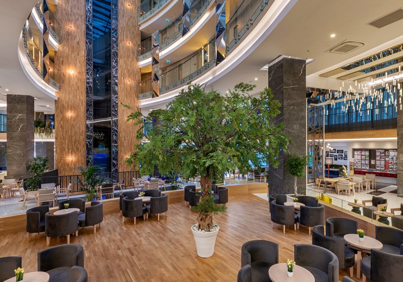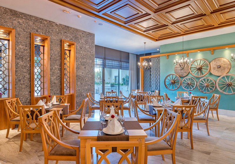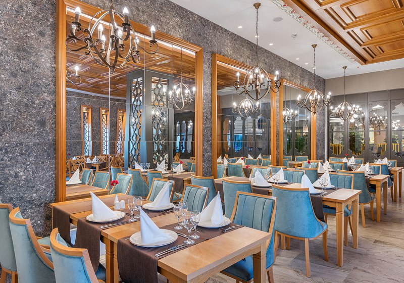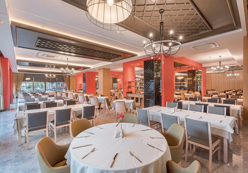• Buffet & Live: Hauptrestaurant mit Terrasse, Buffets und Live-Kochen inklusive.