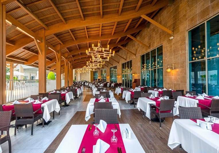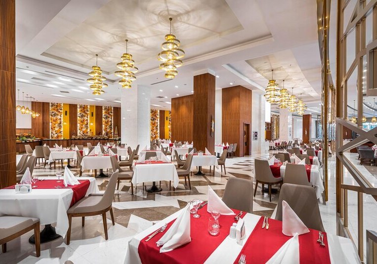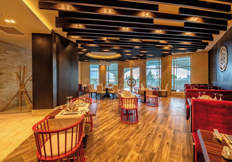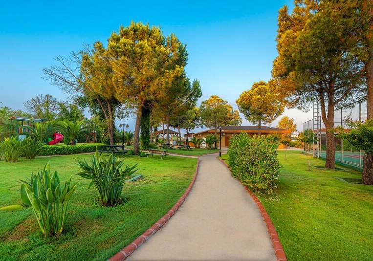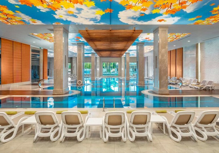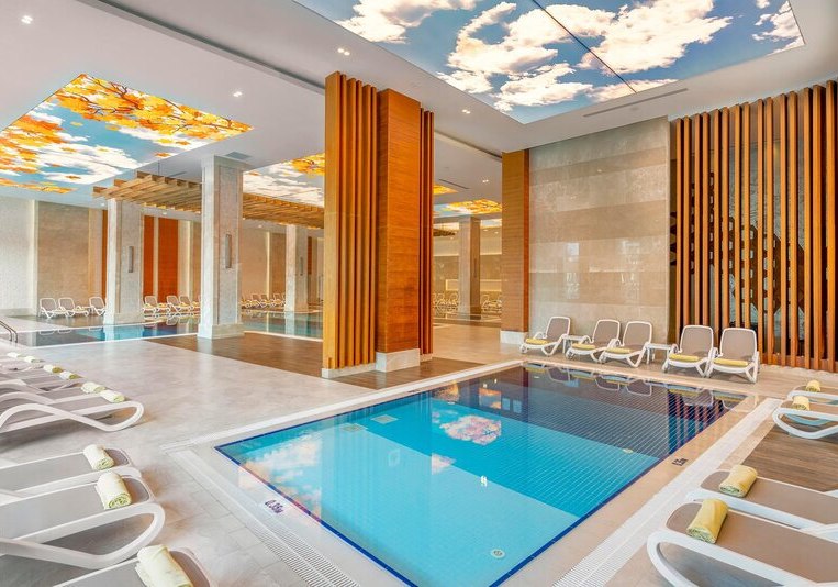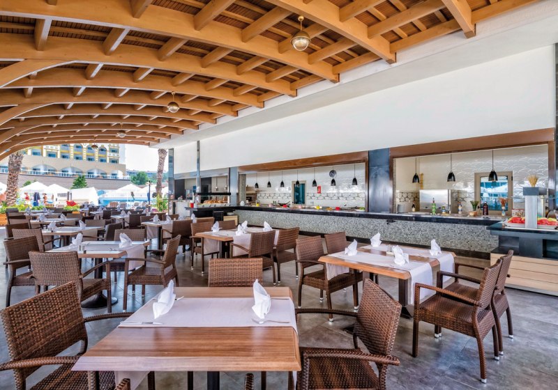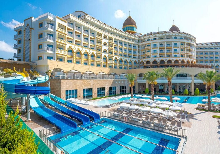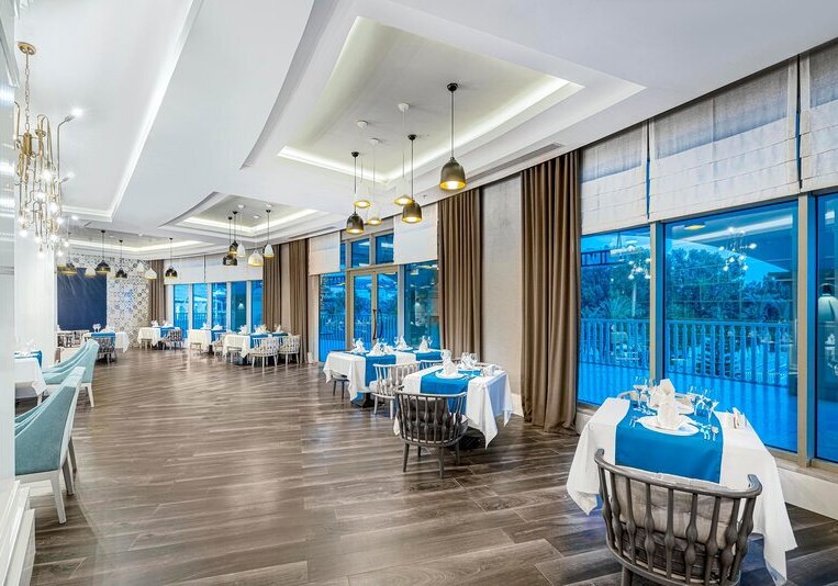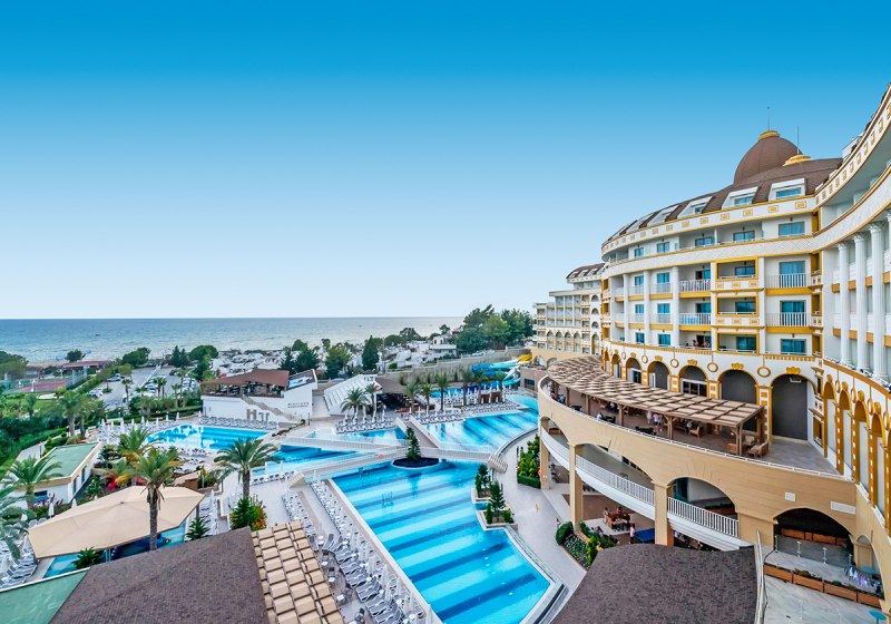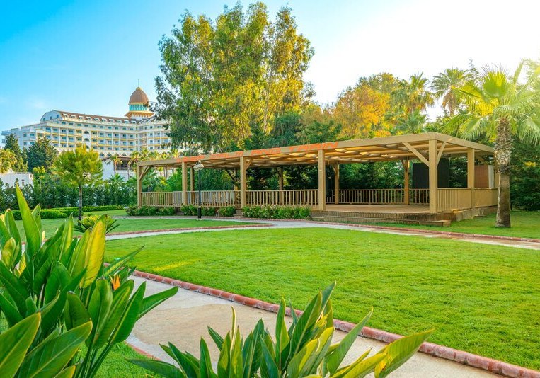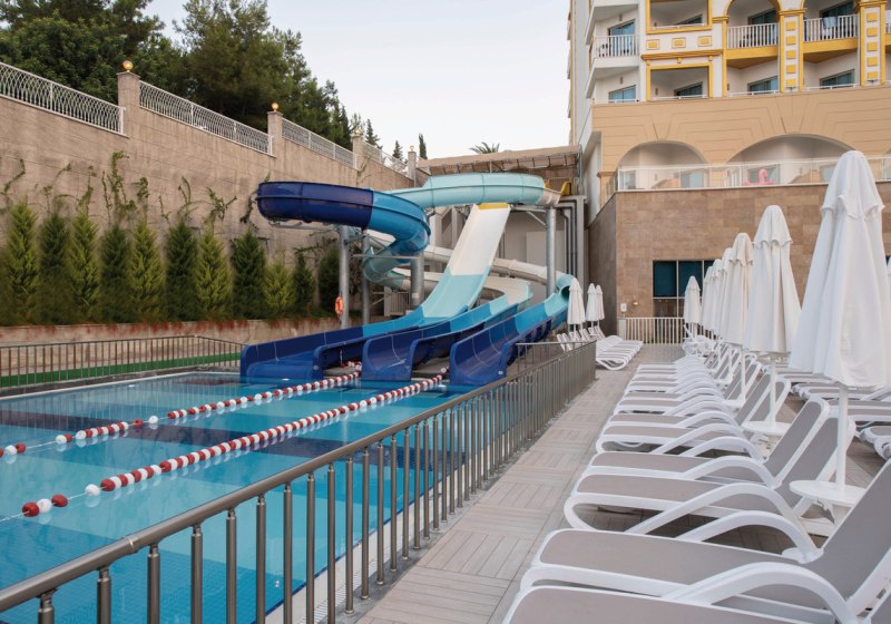 Zwischen Süßwasserpool mit drei Wasserrutschen, ruhigen Innenbereichen und professionell geführten Restaurants entsteht ein runder Rhythmus aus Aktivität und Ruhe. Abends locken Shows und Live-Musik, später die hauseigene Diskothek. Wer Abwechslung sucht, erreicht Side nach rund 5 Kilometern. Highlight: Vielfältige Tagesstruktur von Pool bis Abendshow.