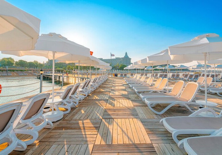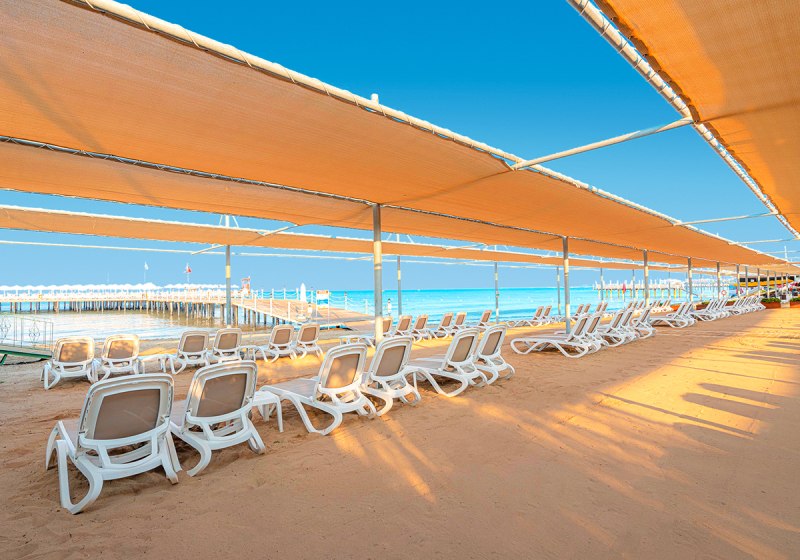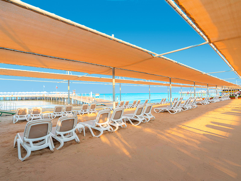 • Am Strand: Liegen, Schirme, Badetücher und Strandbars inklusive.