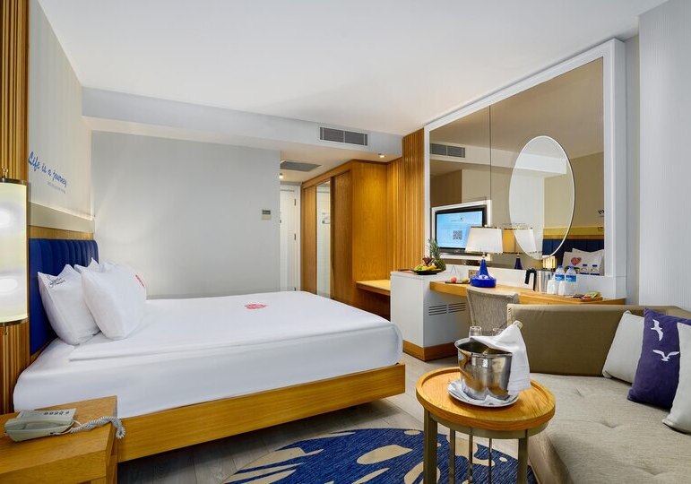 Sidemarin Kirman Premium öffnet Euch in Kumköy direkt am Sandstrand die Tür zu entspannten Strandtagen und lebendigen Abenden. 2016 erbaut, wirkt die Anlage klar strukturiert und großzügig geplant. Familien, Strandliebhaber, Wellnessfans und Hochzeitsreisende finden hier stimmige Angebote ohne Schnörkel. Highlight: Direkter Sandstrandzugang mit kompletter Strandausstattung.