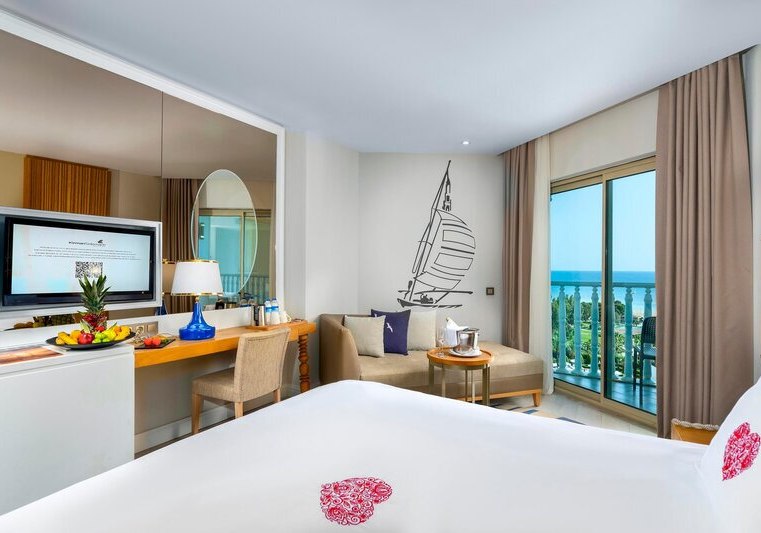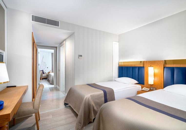 • Klimaanlage • Balkon (je nach Zimmerkategorie) • Haartrockner • Minibar (kostenfrei) • Telefon • Safe (kostenfrei) • Kaffee-/Teezubereiter • Fernseher • rollstuhlgerechte Zimmer (auf Anfrage) • WiFi (kostenfrei) • Babywanne (auf Anfrage) • Wasserkocher • Sitzecke (je nach Zimmerkategorie) • Meerblick (je nach Zimmerkategorie) • Schlafsofa • Terrasse