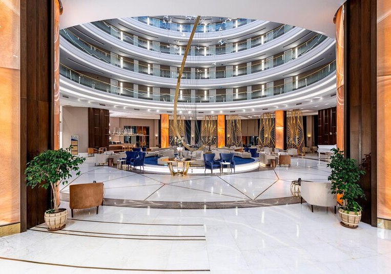 Hinzu kommen Business-Center, zwei Konferenzräume, Shops, Friseur, Spielzimmer, Spielplatz und Gartenflächen. Ein breites Servicepaket von Gepäckaufbewahrung bis Zimmerservice rundet den Aufenthalt ab. Die Wege wirken logisch, die Bereiche klar getrennt. Highlight: Durchdachte Zonen für Ruhe, Spiel und Bühne.