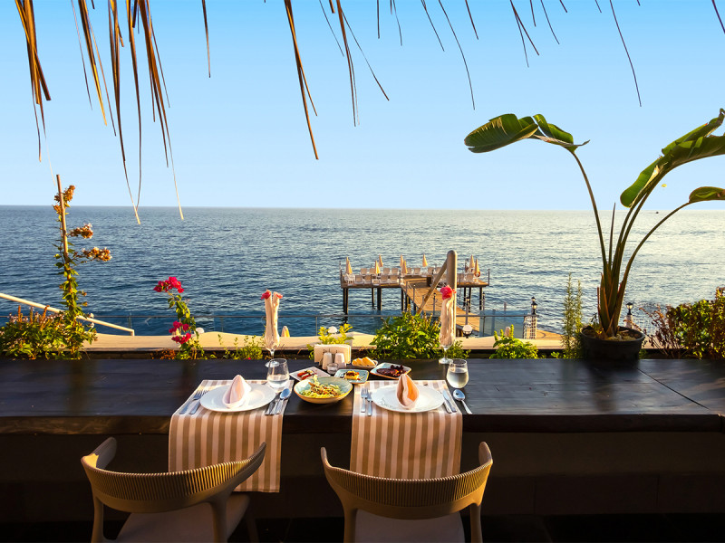 Ihr wählt zwischen Doppelzimmern, größeren Premiumzimmern mit Terrasse und seitlichem Meerblick, Superiorzimmern mit Sofa im Haupthaus und Meerblick sowie Deluxezimmern mit etwa 36 Quadratmetern und direktem Meerblick. So entscheidet Ihr zwischen Raumgewinn und Blickachsen. Highlight: Meerblick-Optionen bis zum direkten Frontpanorama.