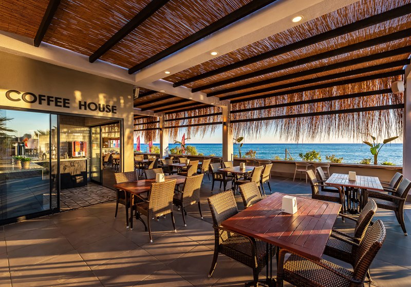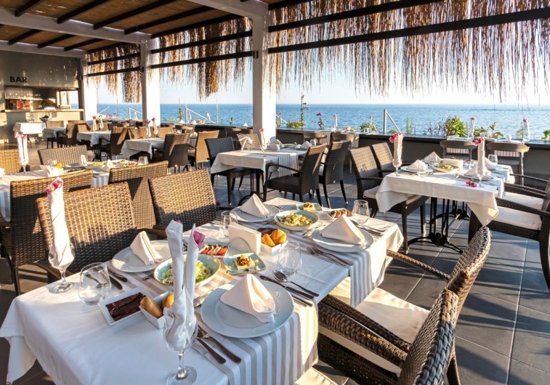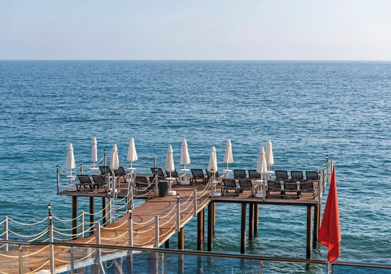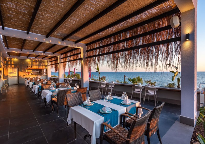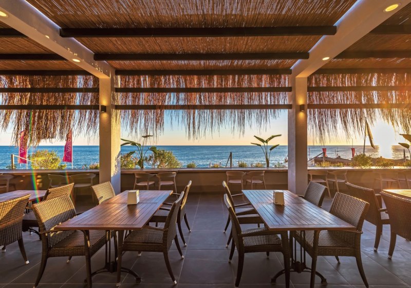 Die 120 Zimmer verteilen sich auf sechs Etagen, WLAN ist in Lobby und Zimmern inklusive. Tagsüber locken Süßwasserpool und zwei Wasserrutschen, abends Animation und Livemusik. Kulinarisch bleibt Ihr flexibel: Buffet im Hauptrestaurant, Akzente im À-la-carte-Restaurant, dazu Lobby-, Pool- und Beachbar. Highlight: Adults-only-Strandhotel mit Steg und kompakter Wegeführung.