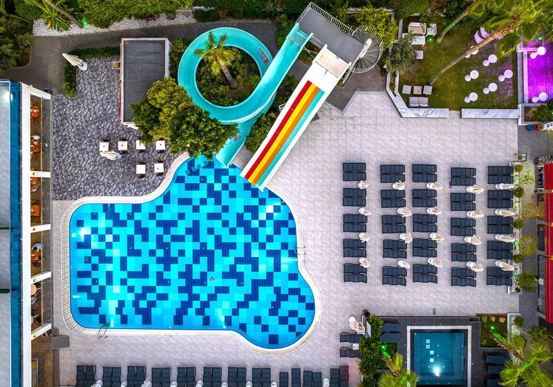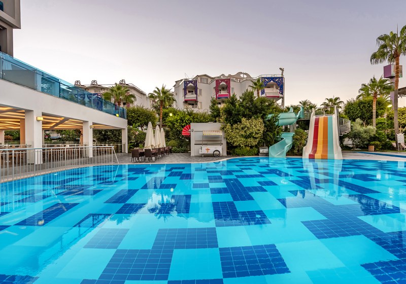 • Pool & Rutschen: Großer Außenpool und zwei Rutschen bringen Aktivität ins Haus.