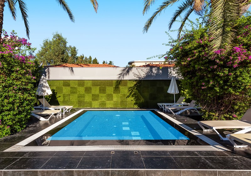 Im White City Beach Hotel zieht Ihr Euch in ein Adults-only-Haus ab 16 Jahren zurück, das Klarheit und Struktur schätzt. Die Atmosphäre wirkt fokussiert, mit kurzen Wegen zwischen Lobby, Garten und Pool. Ihr lebt nah am Meer, erreicht den Kies-/Sandstrand über eine Unterführung und steigt für den direkten Zugang ins Wasser bequem vom Badesteg.