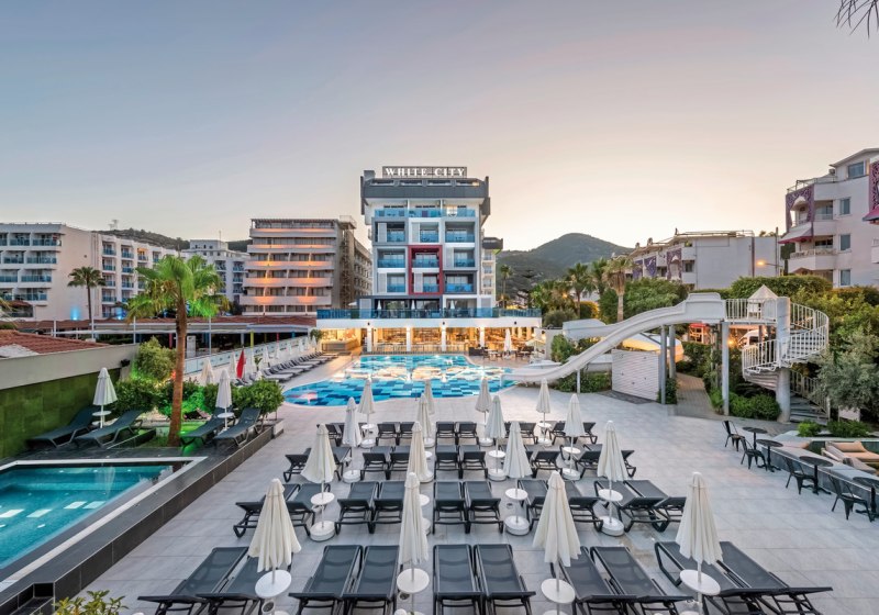 White City Beach Hotel verbindet Adults-only-Ruhe mit klarer Aktivstruktur: kurzer Weg zum Strand mit Badesteg, kompakter Poolbereich mit Rutschen, abendliche Unterhaltung, solide Wellness-Basis und weit gefasstes Sportprogramm. All Inclusive sorgt für planbare Verpflegung und verlässliche Getränkeauswahl.