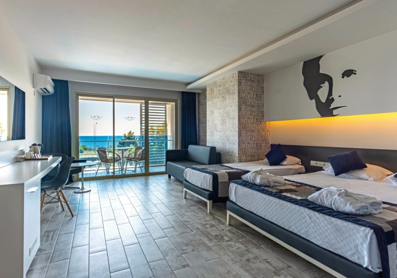 • Klimaanlage • Endreinigung • Haartrockner • Minibar (gegen Gebühr) • Safe (gegen Gebühr) • Meerblick (je nach Zimmerkategorie: seitlich) • Schlafsofa (je nach gebuchter Leistung) • Kaffee-/Teezubereiter (je nach gebuchter Leistung) • Terrasse • Hosenpresse • Fernseher (gegen Gebühr) • rollstuhlgerechte Zimmer (auf Anfrage) • WiFi (gegen Gebühr) • Parkblick • Balkon (je nach Zimmerkategorie)