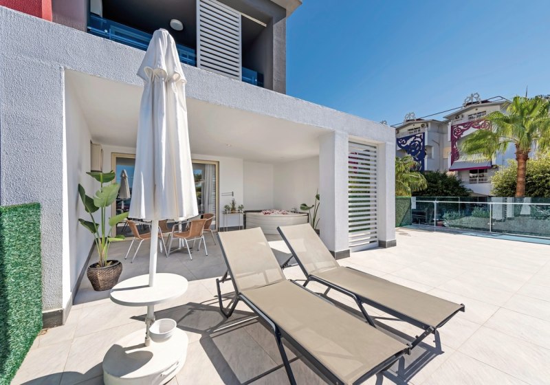 Ihr wohnt in Alanya-Konakli, etwa 100 Meter vom Kies-/Sandstrand mit teils felsigen Partien entfernt. Der Weg führt bequem durch eine Unterführung; ins Meer geht es über den Badesteg. Zum Zentrum von Alanya sind es rund 7 Kilometer, öffentliche Verkehrsmittel erreicht Ihr an der nahe gelegenen Hauptstraße.