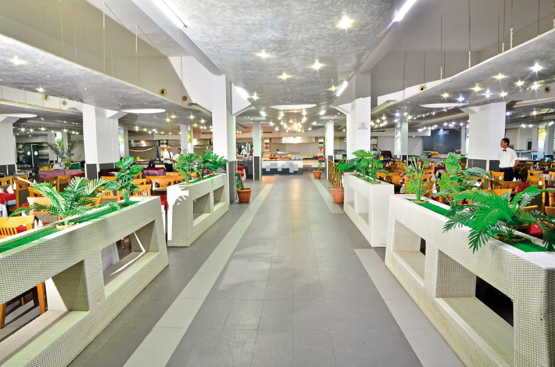 Die Infrastruktur ist groß dimensioniert: 450 Wohneinheiten in zwei Gebäuden, Rezeption mit Aufzug, umfassendes WLAN, klimatisierte Innenbereiche sowie zahlreiche Shops vom Minimarkt bis zum Juwelier. Bars, Cafè und Snackbar verteilen sich über das Gelände, sodass Ihr kurze Wege habt – vom Frühstück bis zum abendlichen Drink direkt am Strand.