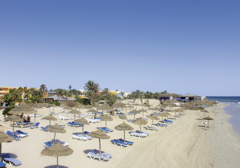 Ihr urlaubt auf Djerba direkt am hoteleigenen Sandstrand, nahe Midoun. Das Ortszentrum von Midoun liegt rund 6 Kilometer entfernt, Houmt Souk erreicht Ihr nach etwa 13 Kilometern. Zum Flughafen Djerba International sind es ca. 28 Kilometer. Das nächste Krankenhaus befindet sich in ungefähr 6 Kilometern Entfernung. Die Meeresnähe prägt den Aufenthalt: kurze Wege vom Zimmer an den Strand, Strandduschen und WCs sowie ein Badeplateau erleichtern entspannte Badetage. Die Lage eignet sich für ruhige Strandstunden ebenso wie für Ausflüge nach Midoun oder Houmt Souk.