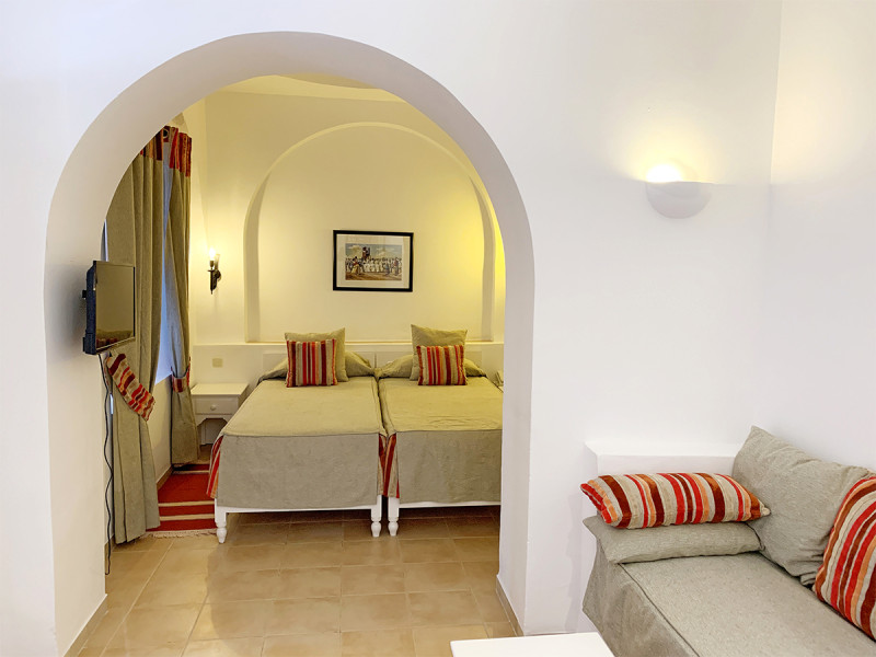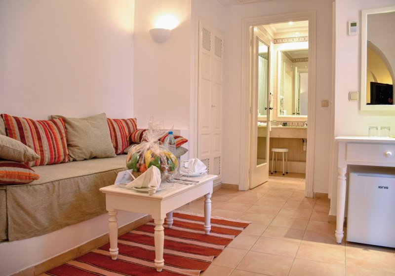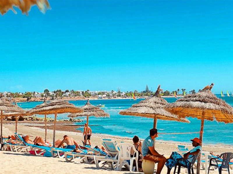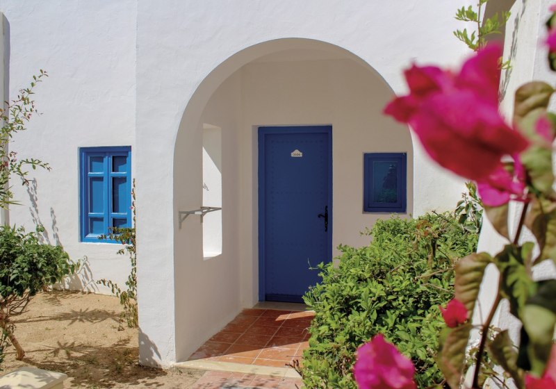 Ihr urlaubt auf Djerba, direkt am Strand und nahe Midoun. Nach Midoun sind es etwa 5 km, Houmt Souk liegt rund 30 km entfernt. Der Flughafen ist in etwa 30 Autominuten erreichbar, ein 27‑Loch‑Golfplatz in rund 10 Minuten. Die Lage verbindet Strandkomfort mit kurzen Wegen zu Ausflügen. Highlight: Strandlage mit schneller Anbindung an Ort und Golf.