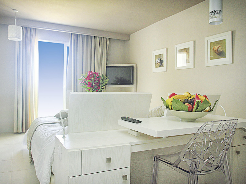 Die Superior-Zimmer setzen einen klaren Akzent: französisches Bett, Dusche, separates WC, Minikühlschrank und Safe, dazu ein Balkon in den oberen Etagen mit Meerblick. Diese Kategorie richtet sich an alle, die den ersten Kaffee mit Weitsicht genießen möchten. Durchdachte Details wie Fliesenboden und Stauraum halten die Zimmer alltagstauglich, während die technische Grundausstattung den Tag unkompliziert begleitet.