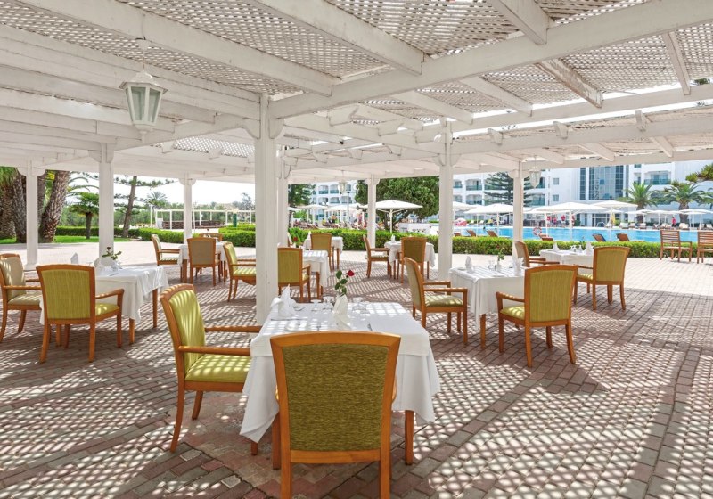 Kulinarisch wählt Ihr zwischen Buffet im Hauptrestaurant und À-la-carte-Küche mit tunesischen, marokkanischen und italienischen Gerichten. Mehrere Bars vom Maurischen Café bis zur American Bar strukturieren Euren Tag. Abends sorgen Folkloreprogramm, Unterhaltungsabende und die Diskothek für Abwechslung. Highlight: Vielseitiges Strandresort mit breiter Gastronomie, Clubs für Kids und kurzer Distanz zum Meer.