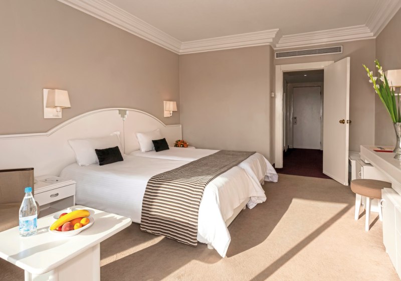 • Alles Wesentliche: Klimatisierte Zimmer mit WLAN, Sat-TV, Minikühlschrank und Safe.