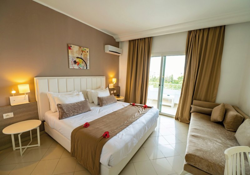 Im Golden Tulip President Hammamet wohnt Ihr in einem Resort, das Strandnähe und Freizeitkomfort verbindet. Nur eine Straße trennt Euch vom hoteleigenen Privatstrand, gegenüber lockt ein Aqua Park. Weitläufige Pools, ein Hallenbad und lebendige Abendprogramme formen Tage mit Struktur und Abwechslung – ideal für Strandliebhaber, Familien und Aktivreisende.