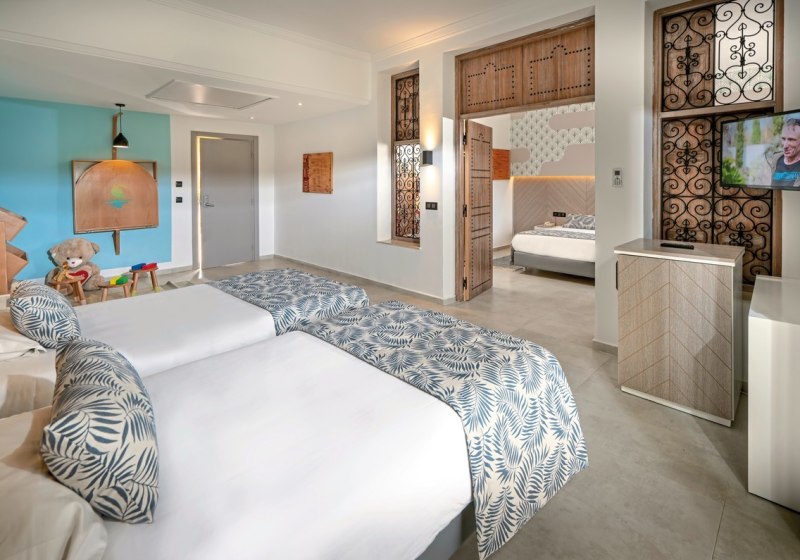 Familienzimmer punkten mit separatem Schlafzimmer, sodass Ihr Schlaf- und Wohnrhythmus trennen könnt. Die Bungalowzimmer mit Meerblick liefern das Meer als steten Begleiter. Ergänzend stehen Optionen wie Doppelbett, Schlafsofa, Sitzecke sowie WiFi zur Verfügung. So findet Ihr je nach Gruppengröße und Tagesrhythmus die passende Aufteilung.