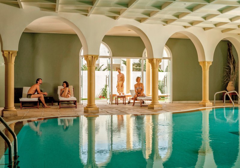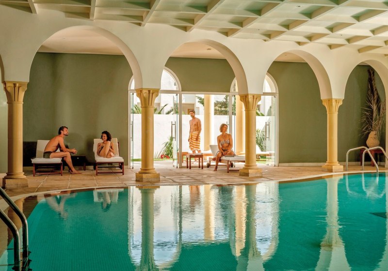 Das Wellness‑Center bündelt drei Saunen und einen Ruhegarten. Ergänzend entspannt Ihr im Indoorpool, während das Spa Spektrum von Massagen bis zu physiotherapeutischen Anwendungen abdeckt (gegen Gebühr). Thalasso‑Therapie, Hamam, Dampfbad und Schönheitssalon erweitern das Programm um klar definierte Anwendungen.