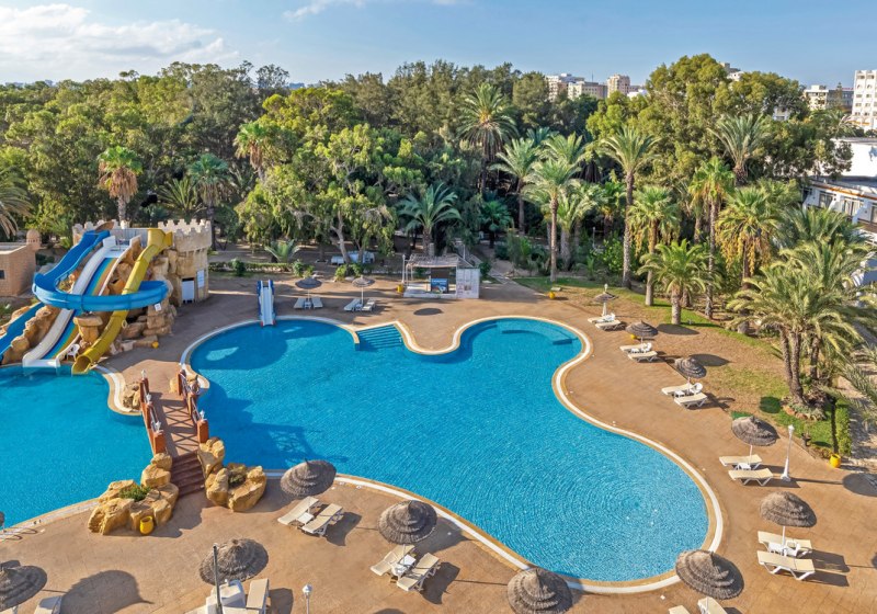 Im weitläufigen Park von sieben Hektar breitet Marhaba Salem seine Anlage direkt am Sandstrand von Sousse aus. Ihr spaziert durch Gärten zu fünf Außenpools, zwei davon mit Meerwasser und Rutschen. Die Atmosphäre ist entspannt und lebendig zugleich, getragen von kurzen Wegen zwischen Strand, Restaurants und Bars im gemeinsamen Komplex mit dem Marhaba Royal Salem. Highlight: Direkter Strandzugang mit großem Park, ideal für Strandtage mit kurzer Distanz.