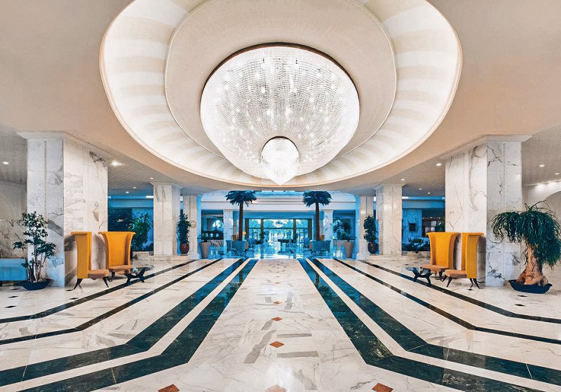 Das Resort umfasst 358 Zimmer auf fünf Etagen und wurde 2015 renoviert. Die Empfangshalle mit Rezeption und Lounge ist Euer Startpunkt, von hier aus verteilt Ihr Euch schnell zu Pools, Strand und Restaurants. Sechs Aufzüge, kostenfreies WLAN in den öffentlichen Bereichen, Shops und Friseur erhöhen die praktische Seite Eures Aufenthalts.