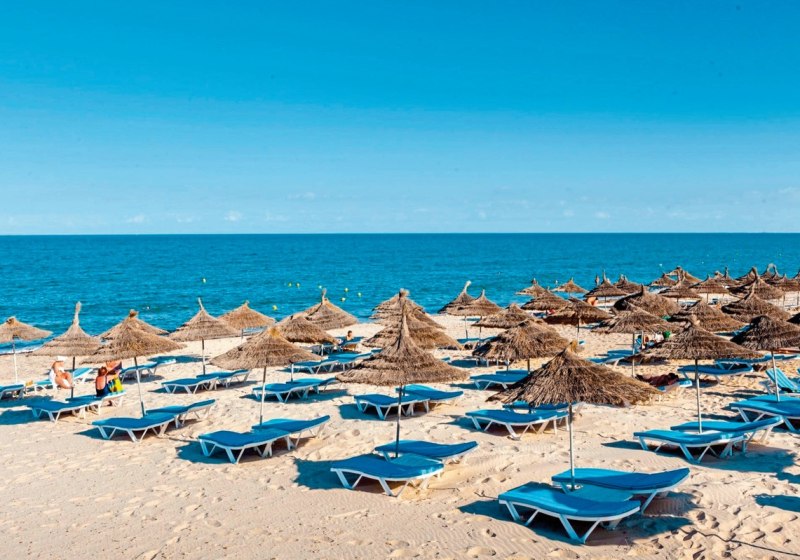 Ihr wohnt direkt am feinsandigen, hoteleigenen Strand in Port El Kantaoui – ein Vorteil, der Euren Tagesrhythmus angenehm entschleunigt. Für einen Bummel erreicht Ihr den Yachthafen nach etwa 2 Kilometern, wo sich Promenade und Hafenszenerie als lebendiger Kontrast zur ruhigen Strandfront zeigen. In ähnlicher Distanz liegt der Aquapark „Aqua Palace“, der für einen kurzweiligen Ausflug sorgt. Die Anreise gestaltet sich unkompliziert: Der Flughafen Enfidha befindet sich rund 35 Kilometer entfernt. Vor Ort erlaubt Euch die klare Resortstruktur, zwischen Meer, Pool und Sonnenterrasse spontan zu wechseln. Wer das Umland erkunden will, startet bequem von hier – mit Mietwagenangeboten im Haus und der Aussicht auf kurze Wege zu maritimen Treffpunkten, Unterhaltung und Stranderholung im direkten Umfeld.