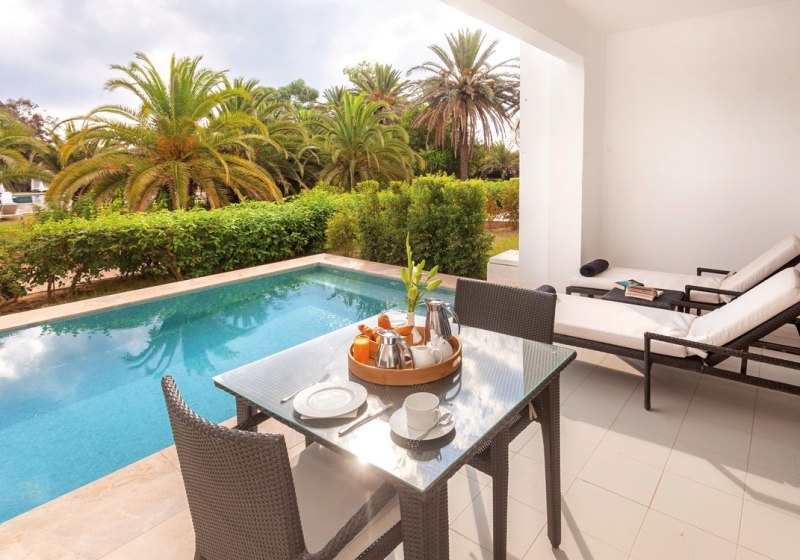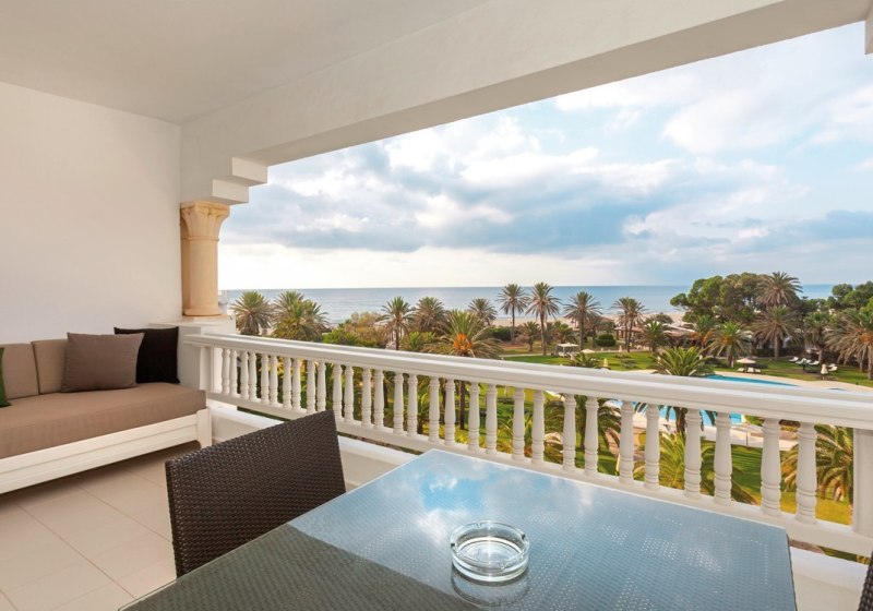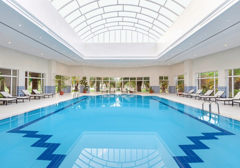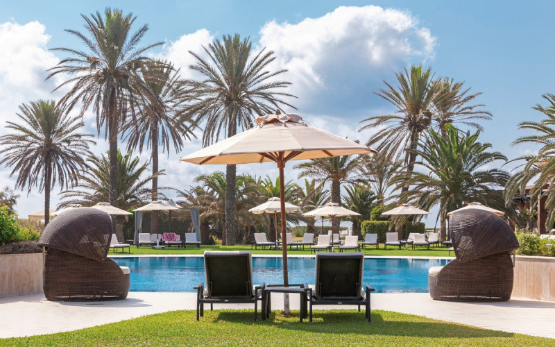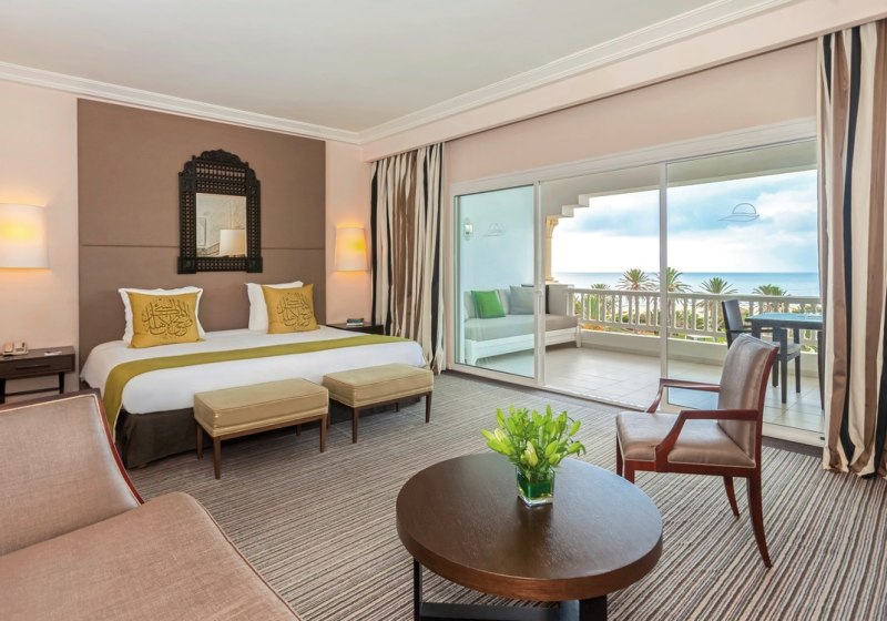 Im Oceana Hotel & Spa wohnt Ihr direkt am Strand von Hammamet – mit dem leisen Rauschen der Wellen als ständigen Begleiter. Die Architektur konzentriert sich auf klare Linien, weite Blickachsen und großzügige Gemeinschaftsbereiche, die Euch viel Raum zum Durchatmen geben. Zwei Außenpools strukturieren das Herz des Hauses, darunter ein ruhiger Relaxpool nur für Erwachsene, während der breite Sandstrand mit Liegen und Sonnenschirmen unmittelbar davor beginnt. Wer Rückzug schätzt, findet ihn in Suiten mit Garten-, seitlichem oder freiem Meerblick; wer Nähe zum Wasser liebt, wählt Swim-up Suiten mit Privatpool.