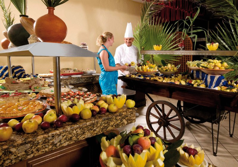 Kulinarisch erwartet Euch Abwechslung: Zwei Restaurants, eine Pizzeria, eine Snackbar, ein maurisches Café und die Poolbar verteilen Genuss über den ganzen Tag. Mit All-Inclusive-Optionen, Live-Kochen, Snacks sowie alkoholischen und alkoholfreien Getränken gestaltet Ihr Eure Mahlzeiten flexibel.