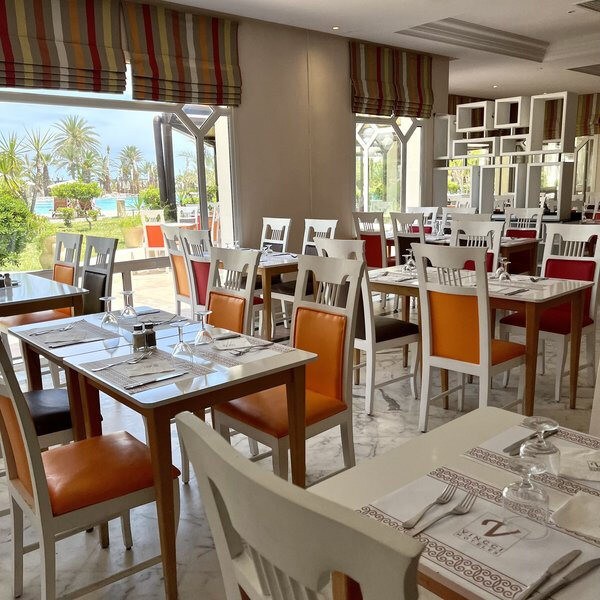 Die öffentliche Bereiche sind klar gegliedert: Lobby und Bars als Treffpunkt, Gartenflächen als Rückzugsort, das Spa „Lé Berbère“ für wohltuend sachliche Anwendungen. Kulinarisch wechselt Ihr zwischen Hauptrestaurant und Spezialitäten, mittags lockt das Poolrestaurant. Das Haus war ehemals als RIU Marillia bekannt – heute erlebt Ihr ein Strandhotel mit klarer Ausrichtung auf Erholung und unkomplizierte All-Inclusive-Komforts. Highlight: Ehemals RIU, heute fokussiert auf entspannten Strandgenuss.
