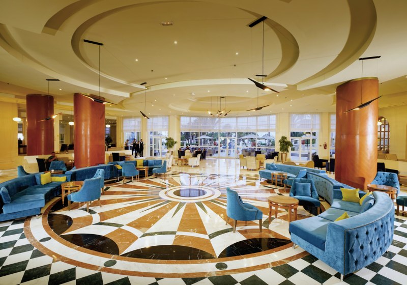 371 Wohneinheiten verteilen sich auf ein Hauptgebäude und Bungalows. Der Ankunftsbereich mit Lobby und Rezeption ist übersichtlich, WLAN ist im gesamten Hotel kostenfrei. Für ruhige Lesestunden oder kurze Arbeitsfenster steht zusätzlich ein Internetterminal bereit. Die öffentlichen Bereiche sind auf kurze Wege und klare Zonen ausgelegt.
