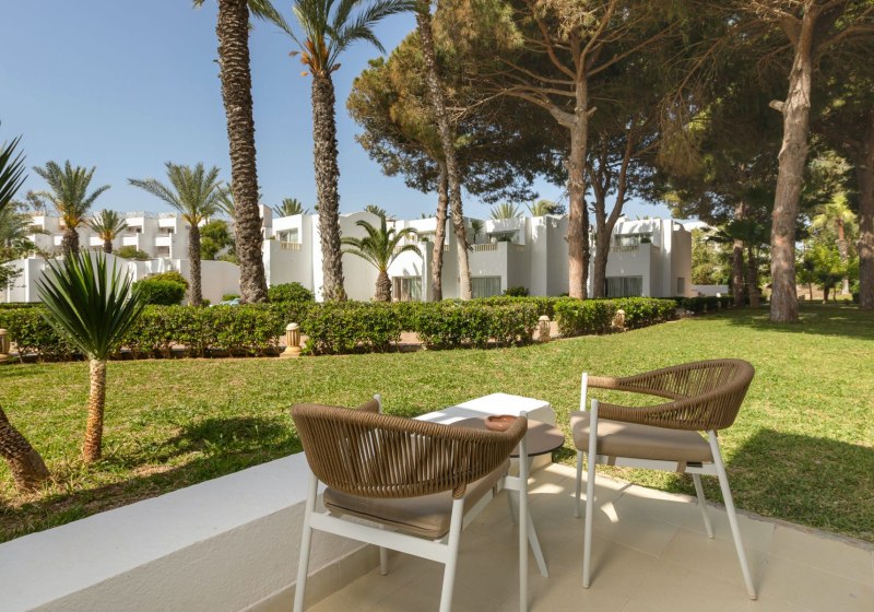 Eure Zimmer sind funktional ausgestattet: Bad und Dusche, separates WC – außer in den Bungalows –, Haartrockner, Sat-TV, Telefon, WLAN, Klimaanlage/Heizung sowie ein kleiner Kühlschrank und Safe. Ein Kaffee-/Teezubereiter gehört ebenso dazu. Draußen wartet ein eigener Balkon oder eine Terrasse für den ersten Kaffee am Morgen.