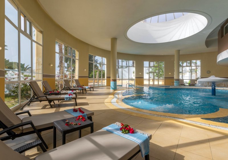 Im Thalasso Therapie Zentrum "Marhaba Thalassa & Spa" fokussiert Ihr Euch auf Meerwasseranwendungen und Regeneration. Das Set-up umfasst ein Meerwasser-Hallenbad, Whirlpool, Hamam und Sauna. Ergänzend stehen Massagen, ein Schönheitssalon und ein Friseur bereit – kompakt organisiert, klar strukturiert.