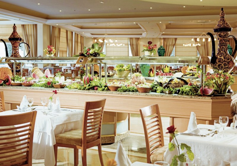 Fünf Restaurants geben Eurem Tag kulinarische Struktur. Das Spektrum reicht vom arabisch-orientalischen Haus bis zum mediterranen Restaurant. Die Präsentation erfolgt in einem gepflegten Rahmen; am Abend gilt im Speisesaal der Dresscode mit langen Hosen. So genießt Ihr regionale Aromen und mediterrane Klassiker ohne Hektik.