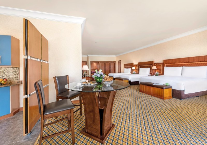 Die Gulf View Zimmer messen etwa 55 Quadratmeter, verfügen über einen Balkon und bieten Meerblick. Auch hier findet Ihr die beschriebene Ausstattung. Insgesamt stehen 99 Zimmer und 11 Suiten zur Verfügung, wodurch Ihr Eure Wunschgröße gezielt wählt. Familienfreundliche Kategorien sind ausgewiesen. Highlight: Großzügige Flächen. Zimmer bieten spürbar Platz für entspannte Routinen.