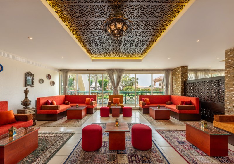 Das Haus ist großzügig angelegt: Rezeption mit Empfangshalle, klare Wege zu Pools, Strand und Restaurants. In den öffentlichen Bereichen und Zimmern nutzt Ihr kostenfreies WLAN. Shoppingarkaden liegen im Gebäude, zusätzlich besteht eine direkte Fußweg‑Verbindung zur benachbarten Mall – praktisch für kurze Besorgungen oder klimatisierte Pausen.
