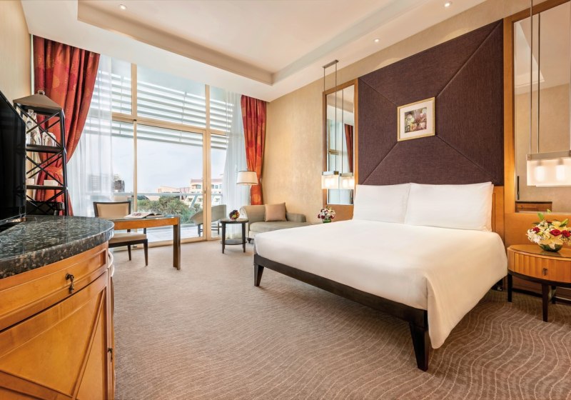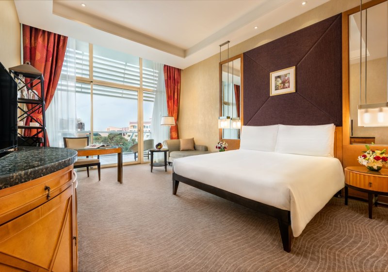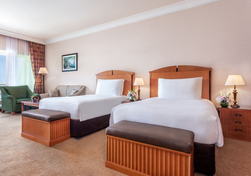 Die Superior Zimmer bieten circa 65 Quadratmeter mit Stadtblick – viel Raum für ruhige Abläufe, mit Bad samt Dusche/WC, Pflegeprodukten, Bademantel und Hausschuhen. Klimaanlage, Safe, Sat‑TV, Telefon sowie Tee‑ und Kaffeezubereitung sind integriert; die Minibar steht gegen Gebühr bereit.