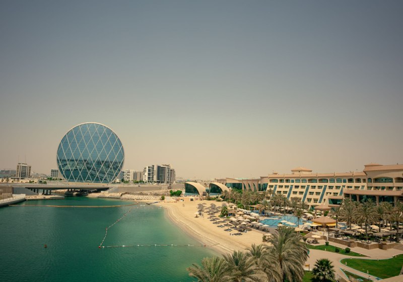Ihr wohnt an der Al Raha Bay in Abu Dhabi – direkt am privaten, etwa einen Kilometer langen Sandstrand. Ein Fußweg verbindet das Hotel mit der benachbarten Shopping‑Mall, sodass Ihr kurze Erledigungen, Einkäufe oder klimatisierte Auszeiten unkompliziert einplant, ohne den Strandfokus zu verlieren.