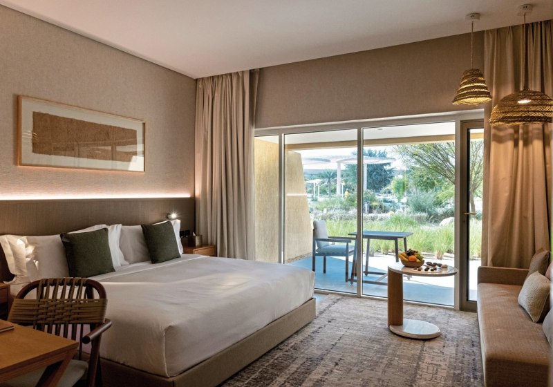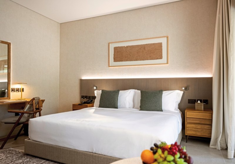 Al Hadiqa Garden Rooms verfügen bei gleichem Zuschnitt über Gartenblick und einen möblierten Balkon oder eine Terrasse. Familien wählt Ihr den Family Room mit zwei verbundenen Deluxe-Zimmern, kombiniert aus King-Bett und Twin-Betten. So bleibt jeder nah beieinander, mit zwei separaten Schlafbereichen. Highlight: Familienzimmer mit praktischer Verbindungslösung.