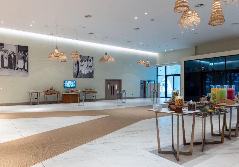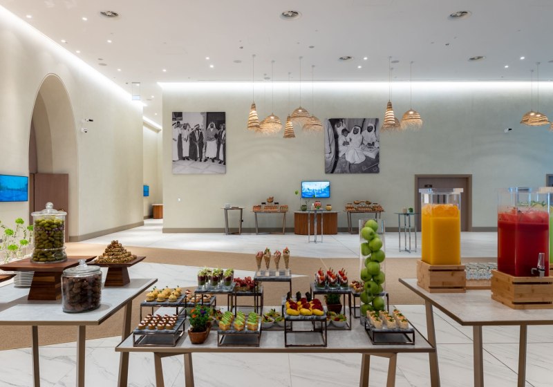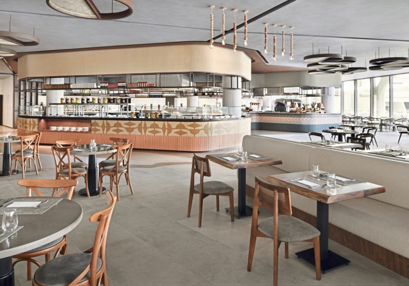 Sechs Adressen stehen bereit: Das Hauptrestaurant Al Rimal versorgt Euch mit Buffetvielfalt, im Ergon Deli & Café genießt Ihr griechische Küche à la carte. Ramsa interpretiert Street Food, während Bahanis im Sportzentrum kurze Wege für den Snack nach dem Training bietet. Highlight: Auswahl von Buffet bis À-la-carte mit klaren Profilen.