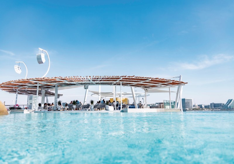 - Wasserzeit: Lange Züge im Salzwasser-Infinitypool des Beachclubs.