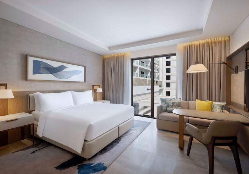 Mit 545 Zimmern und Suiten, großzügigen Lobbys und klarer Wegeführung wirkt Hilton Abu Dhabi Yas Island modern und strukturiert. WLAN im gesamten Hotel, Concierge-Service, Business-Center und Konferenzräume erleichtern Organisation und Austausch. Für Anreise und Mobilität stehen Parkplatz, Garage und Ladestation für Elektrofahrzeuge bereit.