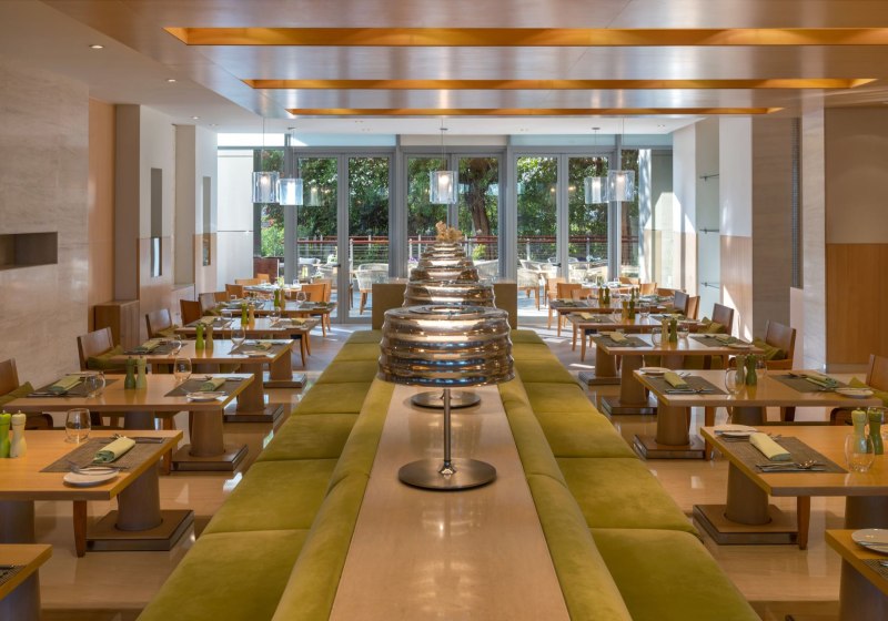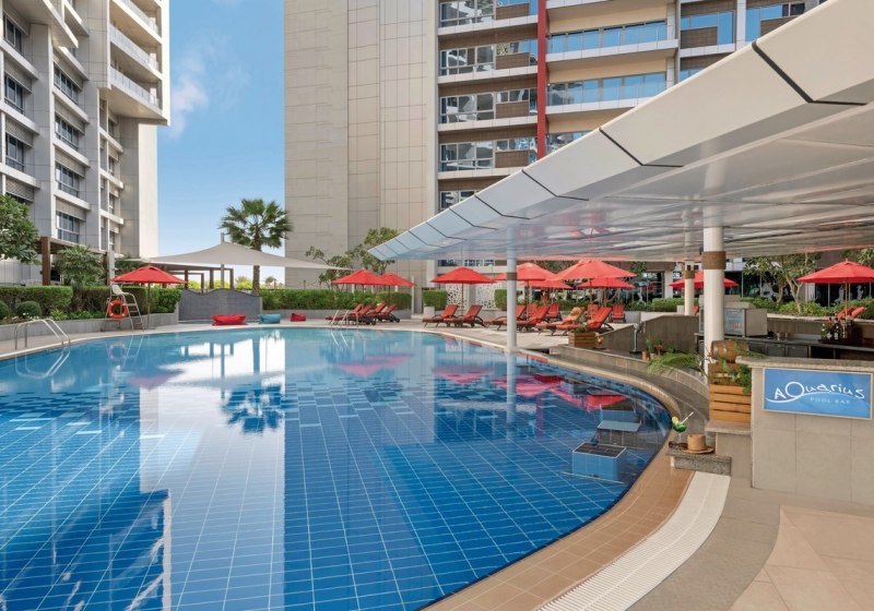 Kulinarisch habt Ihr Auswahl: Teatro serviert Steaks, Sushi und mediterrane Küche; Ginger deckt als All Day Dining den Tag ab. Im Parkafe holt Ihr Euch Kaffeemomente und leichte Happen, die Aquarius Pool Bar bringt Erfrischungen an den beheizten Außenpool – bequem mit Swim-up-Service.