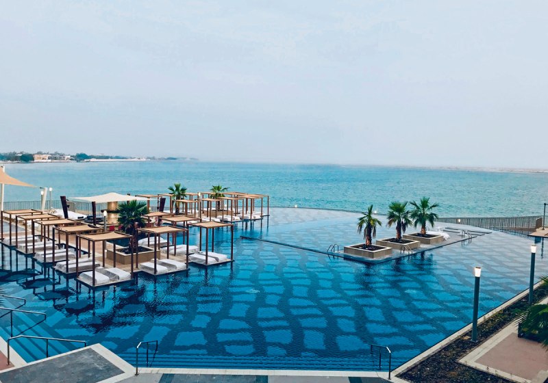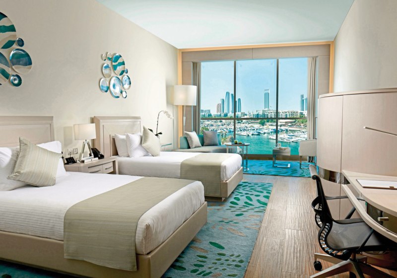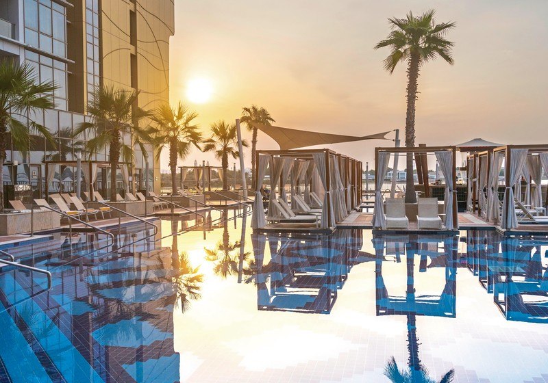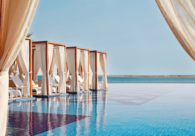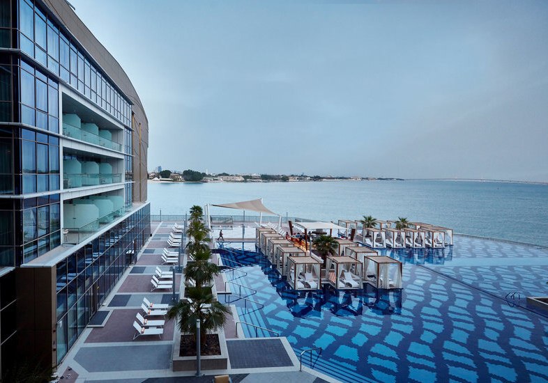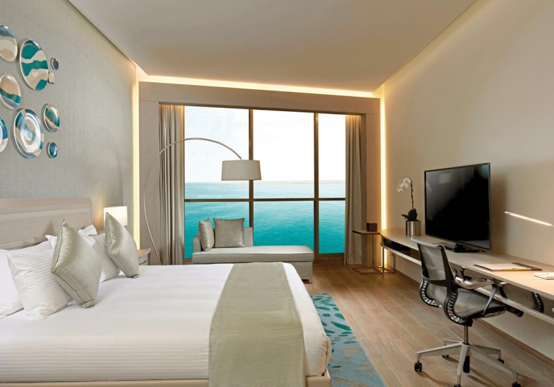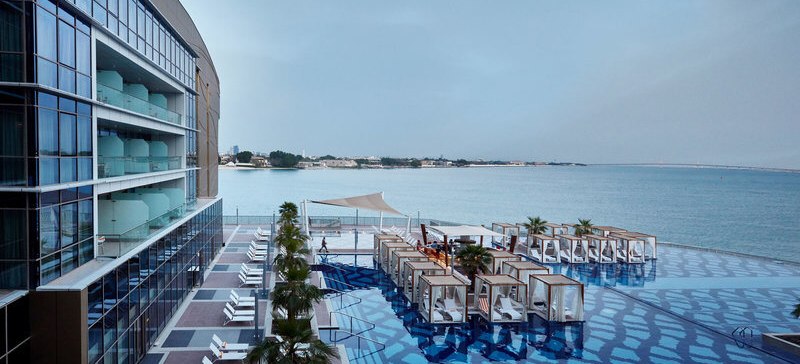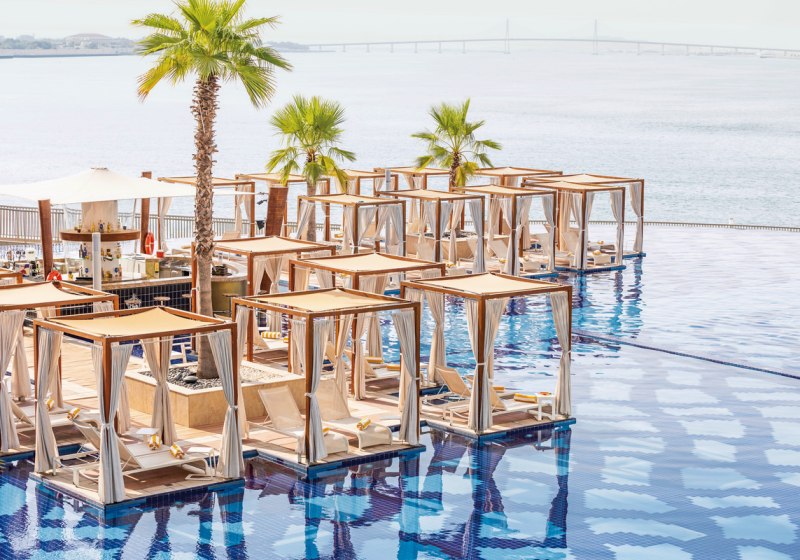 Mit 225 Zimmern und Suiten sowie 35 privaten Villen bietet das Haus Raum für Paare, befreundete Reisende und Familien. Ihr wählt zwischen der Lebendigkeit der Bars und Lounges und dem stilleren Rhythmus am Wasser. Ein Shuttle bringt Euch zum nahegelegenen Corniche Beach, der Marina Walkway liegt fußläufig. Kulinarisch wartet Vielfalt: zwei Restaurants, vier Bars, darunter die Poolbar „View“ und die elegante „Cuvee“ Bar – ideal für den Abendabschluss am Wasser.