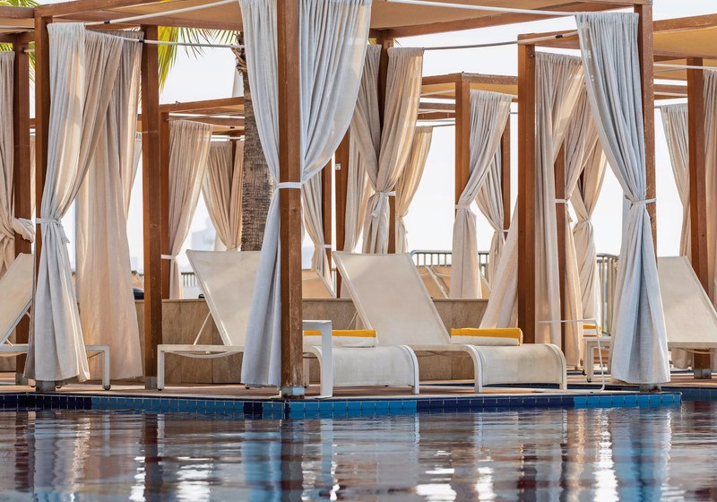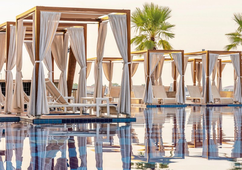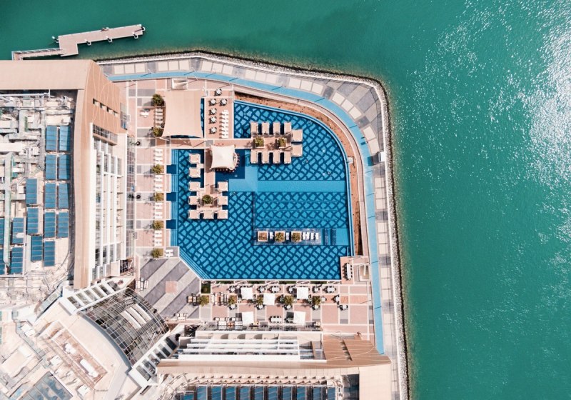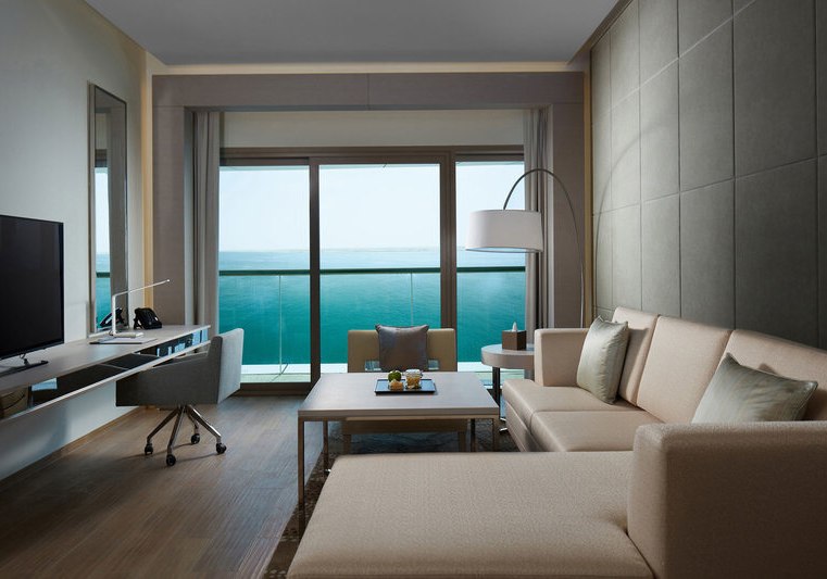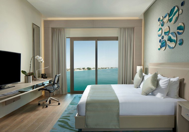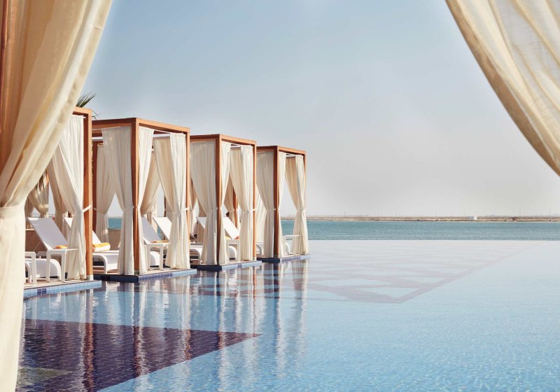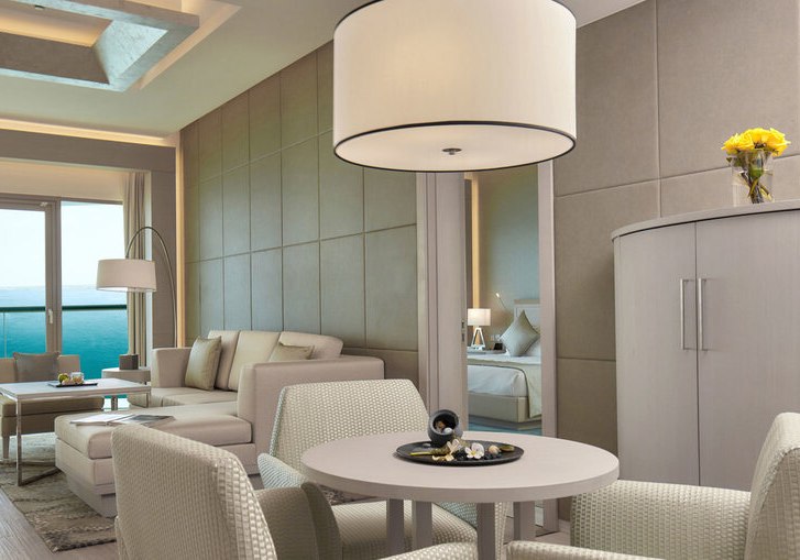 Mit 225 Zimmern und Suiten sowie 35 privaten Villen bietet das Haus Raum für Paare, befreundete Reisende und Familien. Ihr wählt zwischen der Lebendigkeit der Bars und Lounges und dem stilleren Rhythmus am Wasser. Ein Shuttle bringt Euch zum nahegelegenen Corniche Beach, der Marina Walkway liegt fußläufig. Kulinarisch wartet Vielfalt: zwei Restaurants, vier Bars, darunter die Poolbar „View“ und die elegante „Cuvee“ Bar – ideal für den Abendabschluss am Wasser.