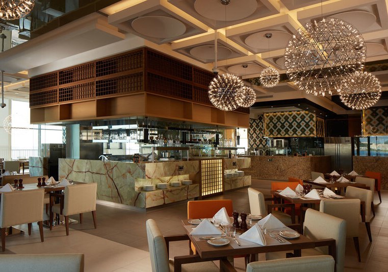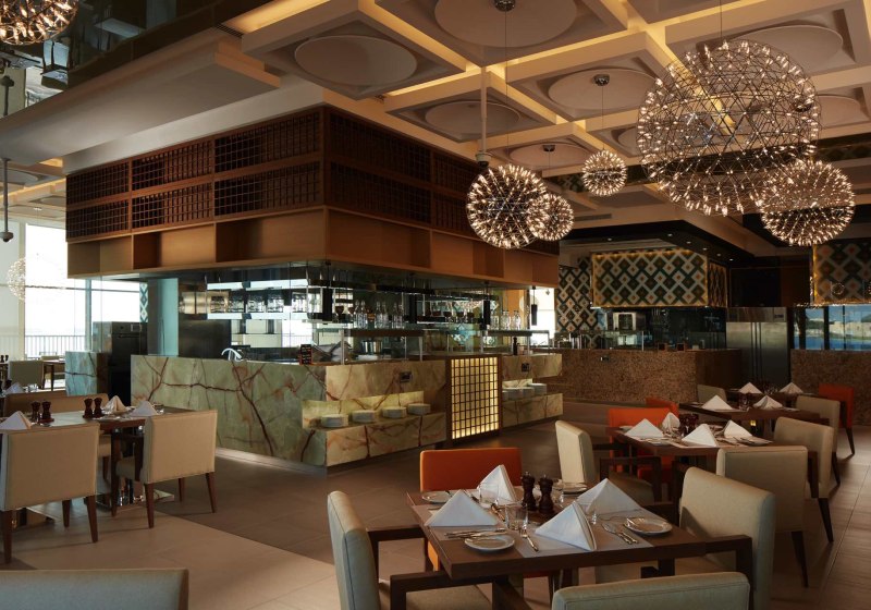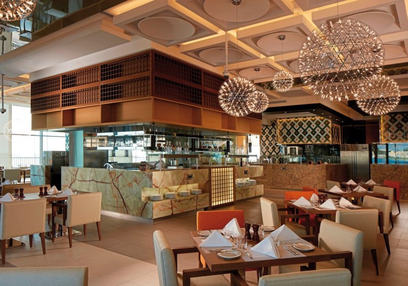 • Mezze Hauptrestaurant: Breite Auswahl mit internationalen Akzenten in klarer Präsentation.