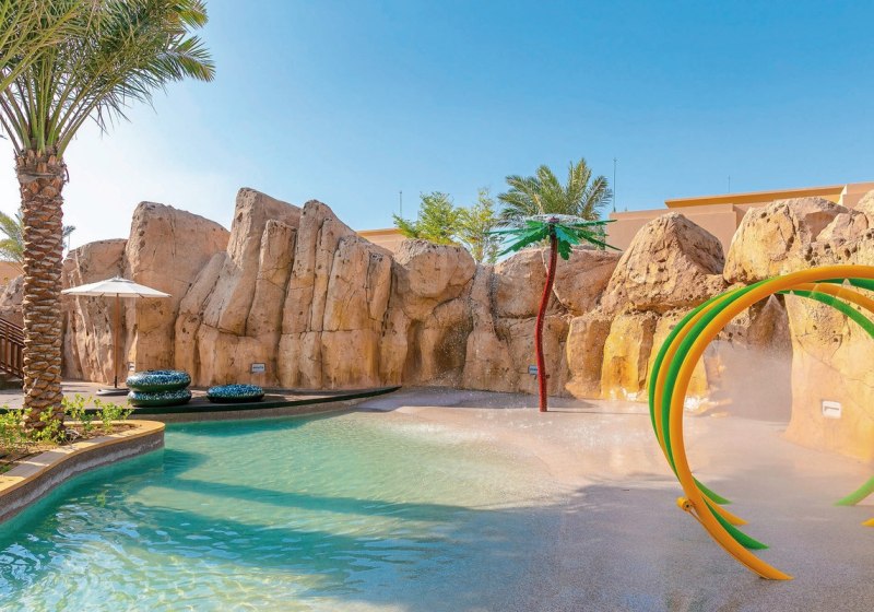 Im Saadiyat Rotana Resort & Villas lebt Unterhaltung vor allem in den Familien- und Wasserzonen. Der Kids Club, der Teens Room und eine eigene Playstation-Ecke halten das Tagesprogramm für verschiedene Altersstufen in Bewegung. Indoor sorgt eine Kletterwand für Abwechslung, draußen ergänzen Splash Pool, Lazy River und eine Wasserrutsche das Badeerlebnis. So entstehen klare Räume: aktiv dort, wo Ihr Action wollt, ruhiger an Strand und in den Gartenbereichen.